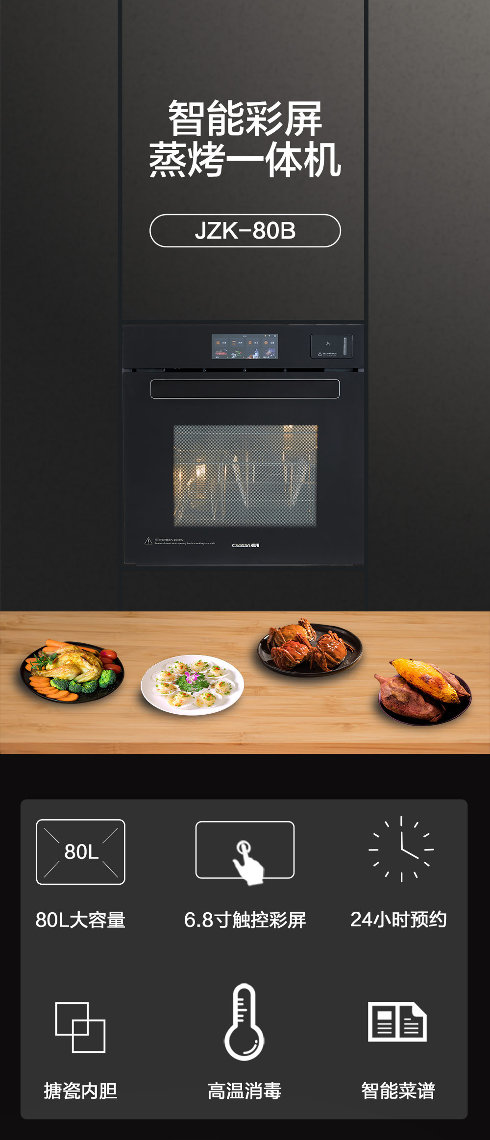 80L大容量;搪瓷內(nèi)膽;高溫消毒;6 8寸觸控彩屏;
