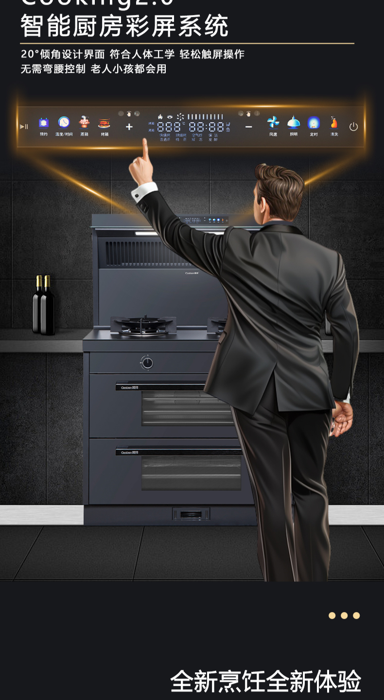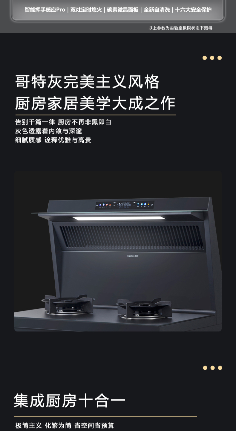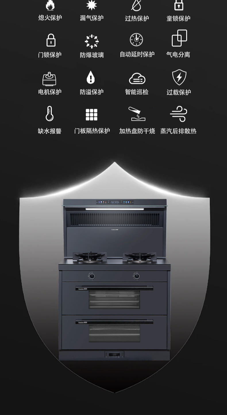 26方巡航風(fēng)量,上蒸下烤新體驗(yàn),Cooking2 0智能彩屏,智能揮手感應(yīng)Pro,雙灶定時(shí)熄火,碳素微晶面板,全新自清洗,十六大安全保護(hù)