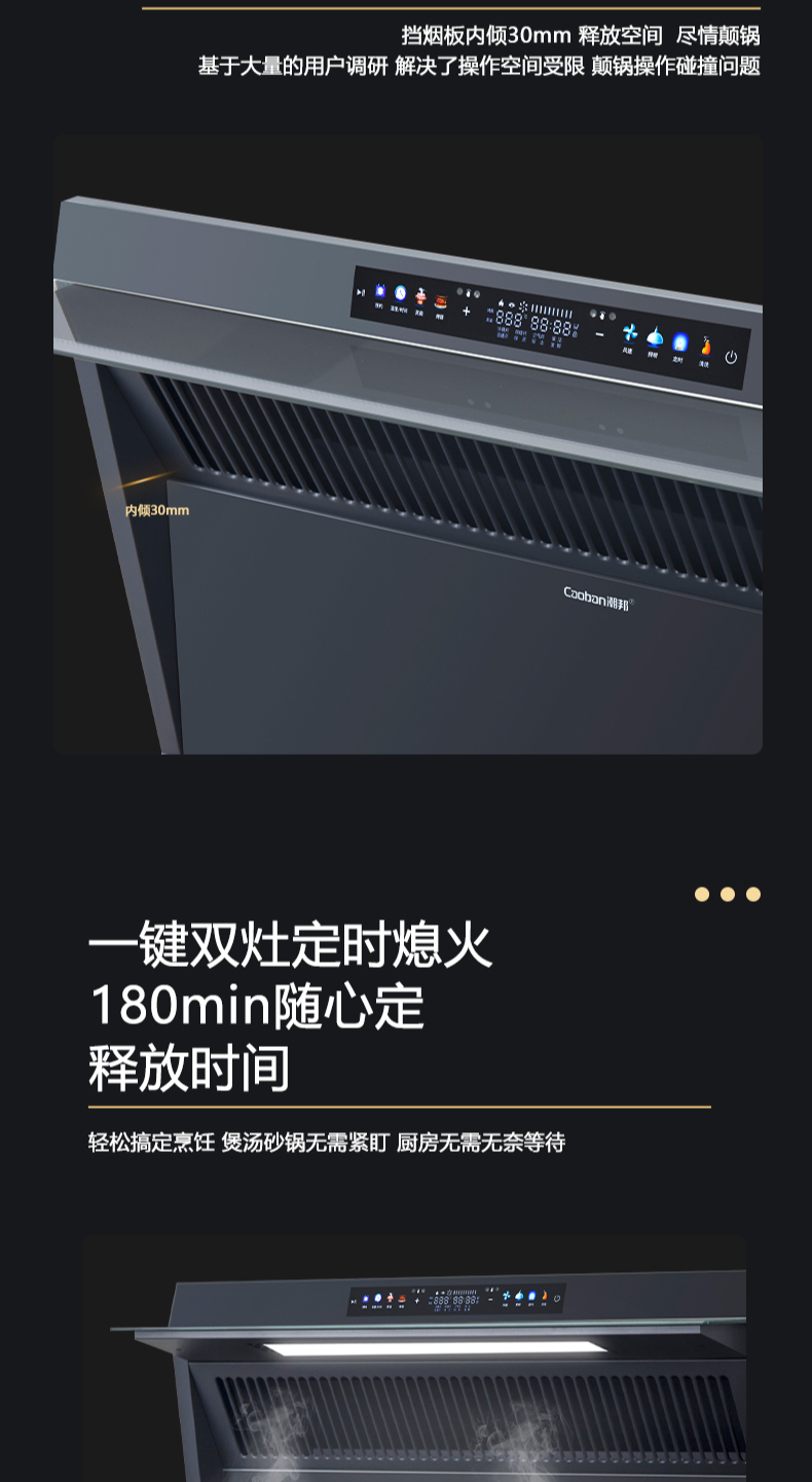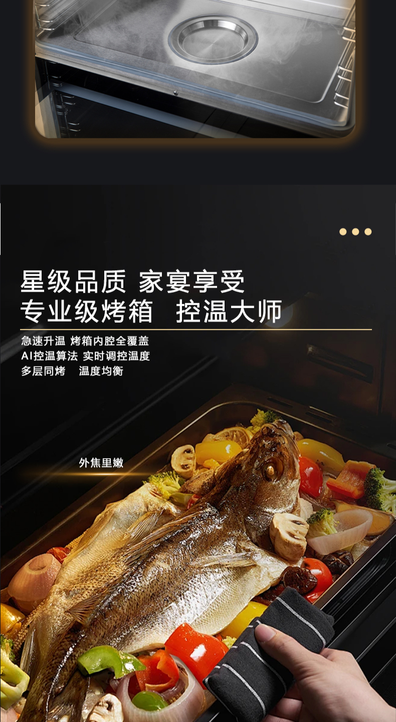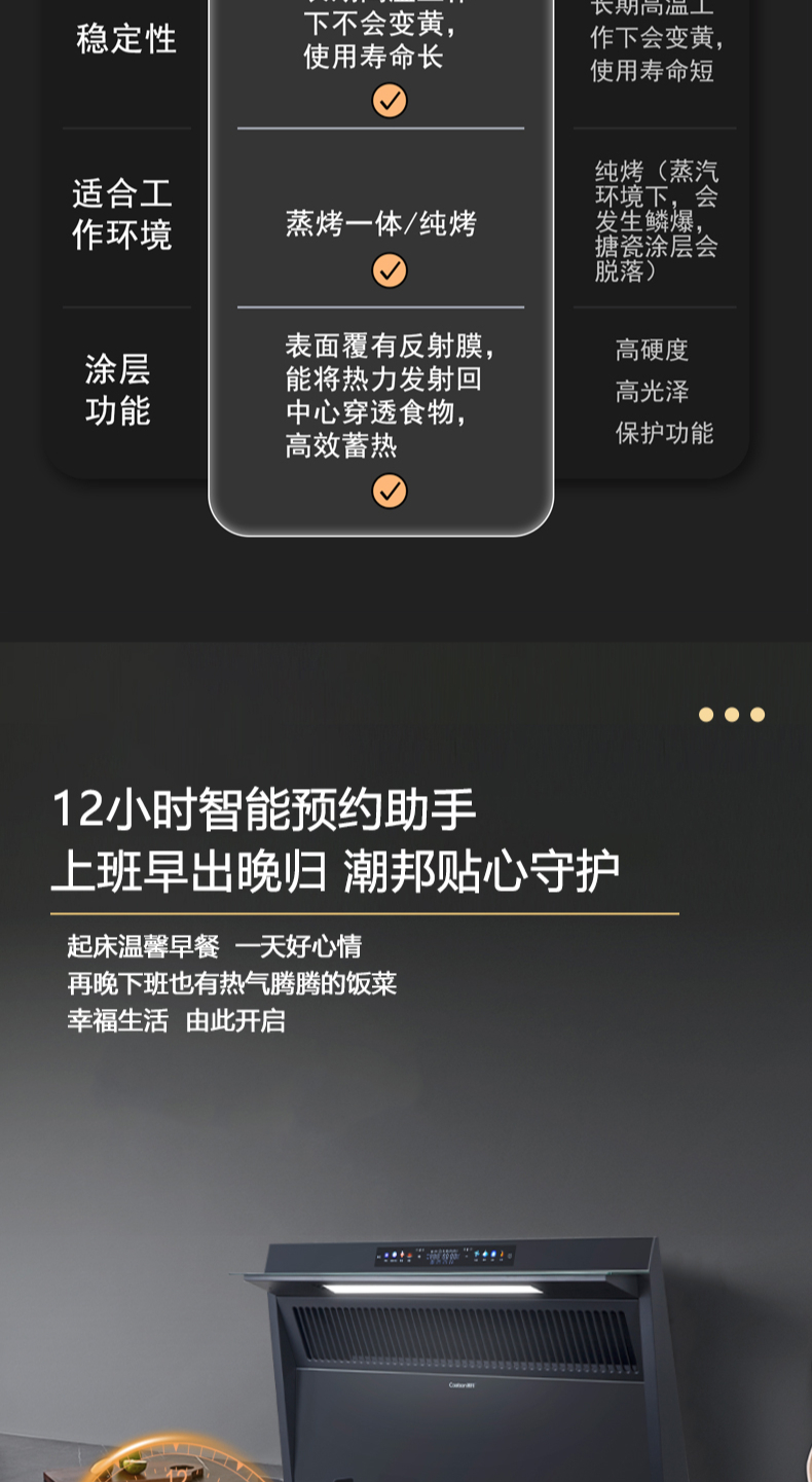 26方巡航風(fēng)量,上蒸下烤新體驗(yàn),Cooking2 0智能彩屏,智能揮手感應(yīng)Pro,雙灶定時(shí)熄火,碳素微晶面板,全新自清洗,十六大安全保護(hù)