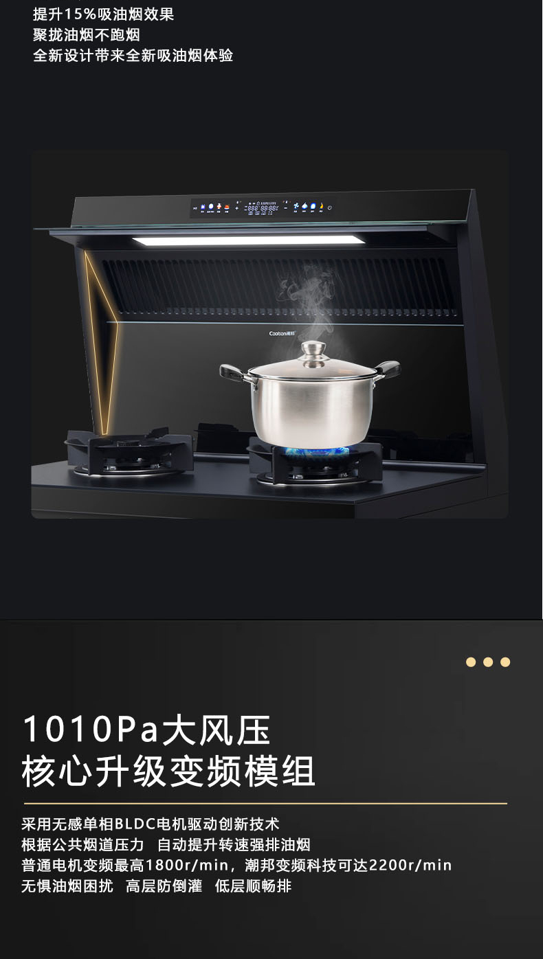 26m3每分巡航風量,左烤右蒸烤,旋風轉烤,智能彩屏,揮手感應,雙灶定時熄火