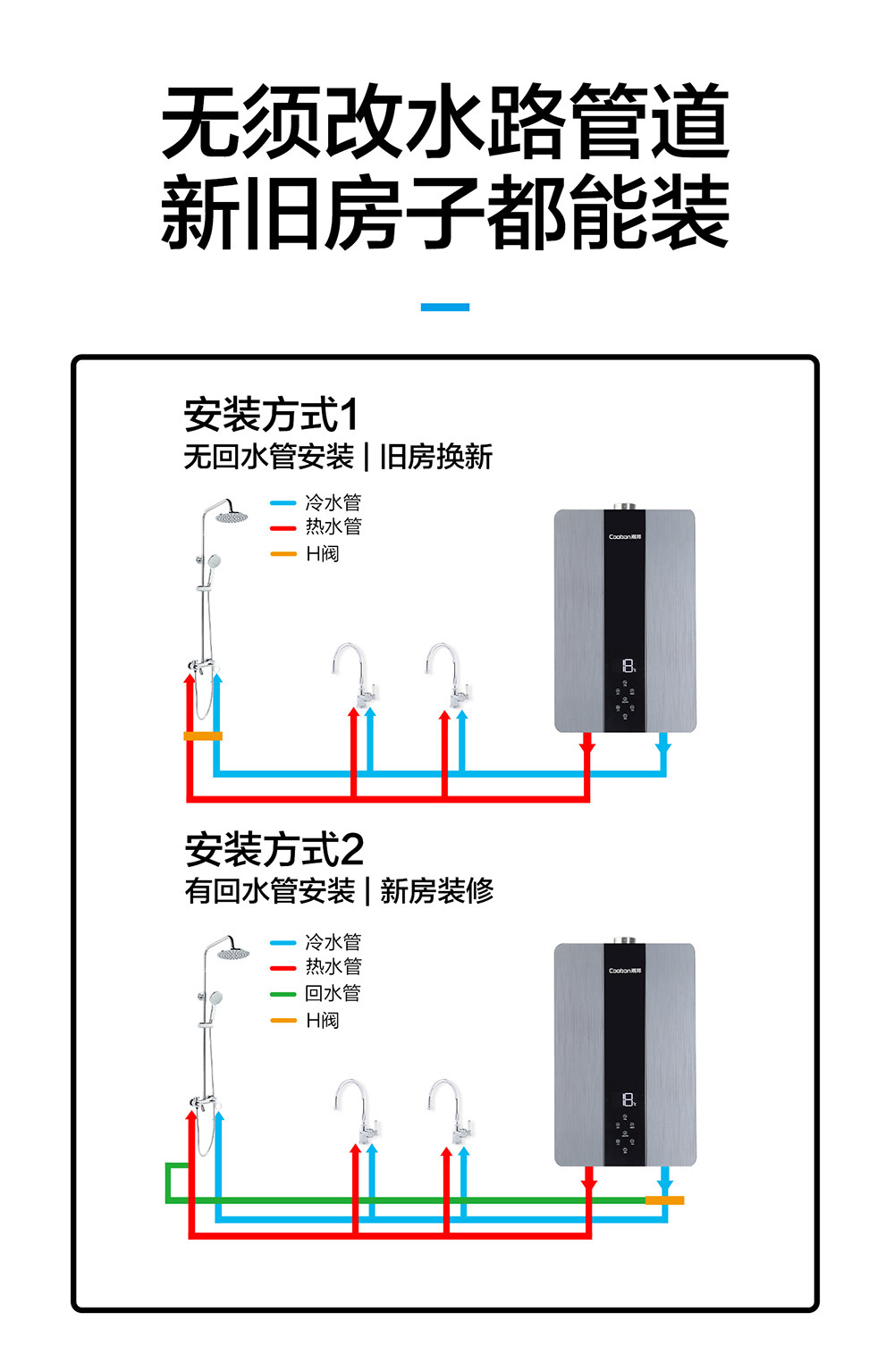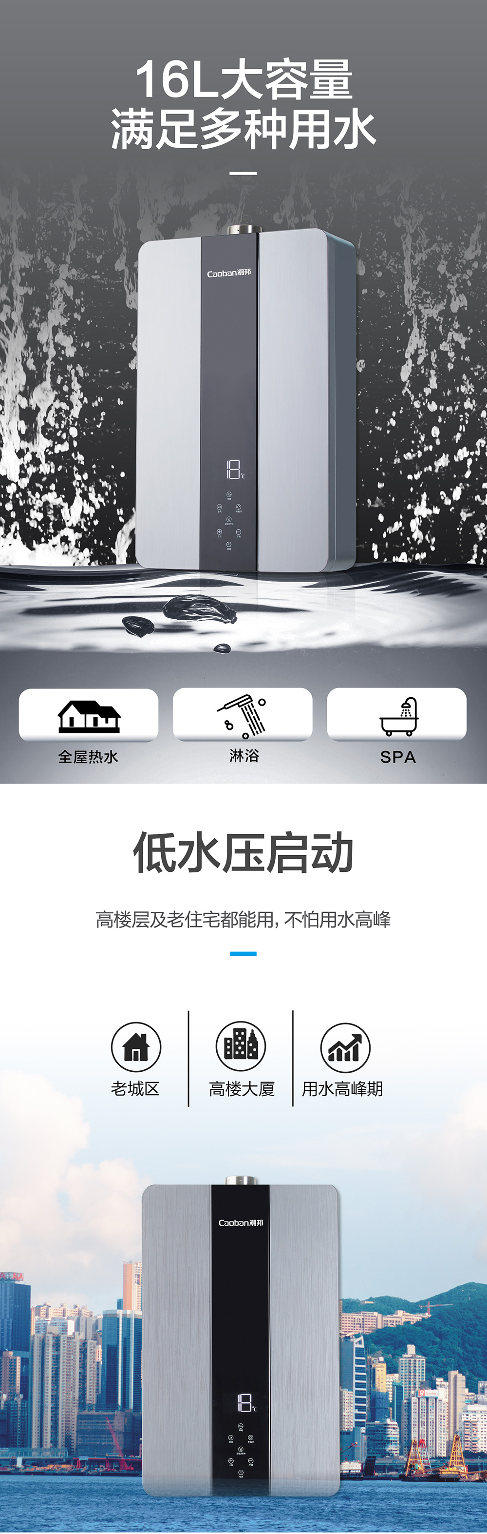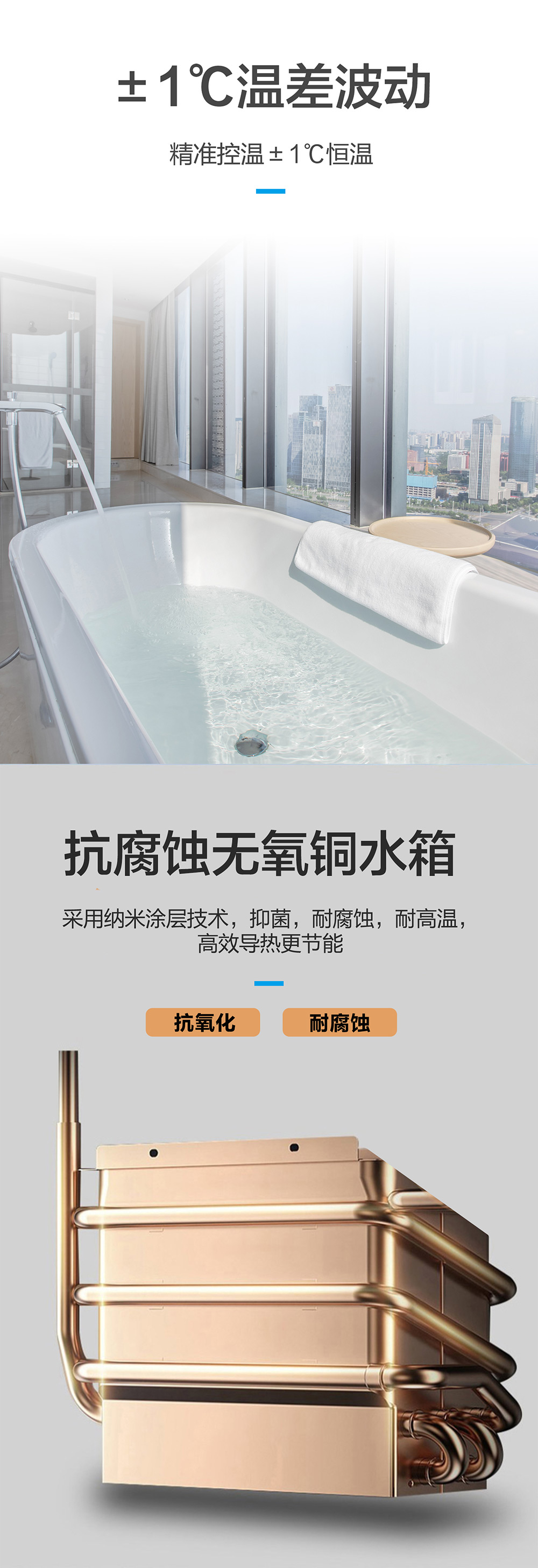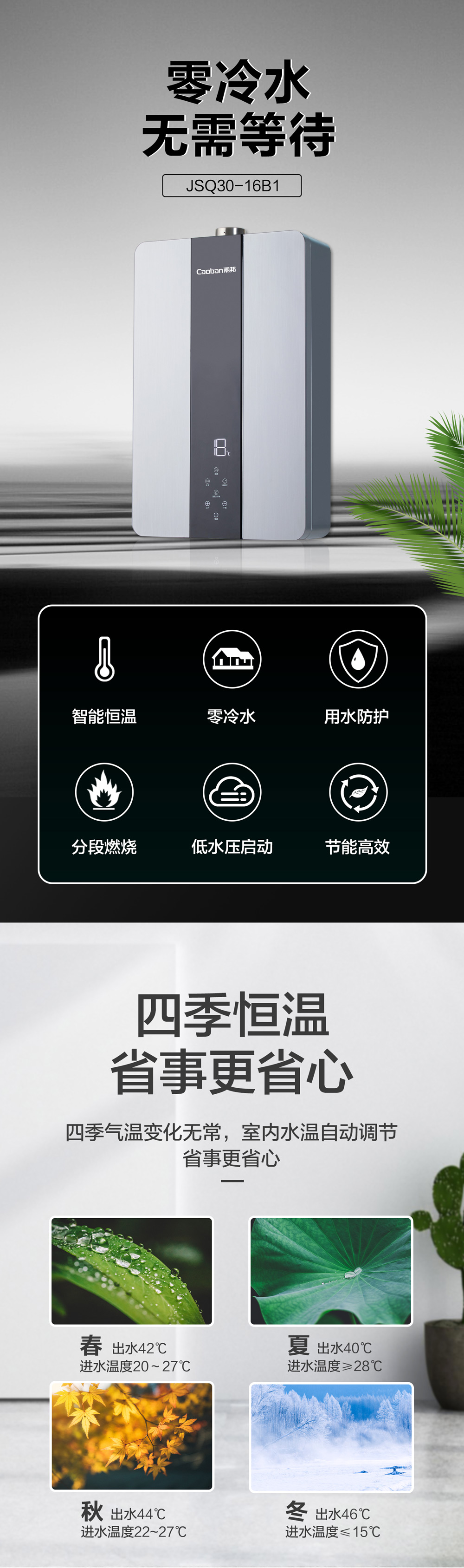 零冷水,智能恒溫,低水壓啟動(dòng)。